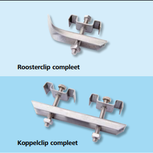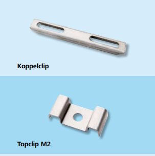 The coupling clip is intended for connecting two grids together, where a grid division is not or not fully supported. It is attached using a coupling clip in combination with two top clips. (See photo).