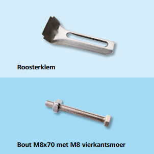 Standard Stud bolt M8x70 with square nut. In combination with the top clip and grille clamp or coupling clip, this bolt is suitable for securing grilles in heights 25, 30 and 38 mm.