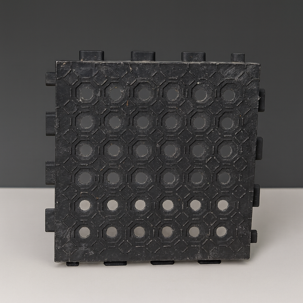 De platen kunnen op twee manieren worden gebruikt: met de gesloten zijde naar boven voor een vlak oppervlak, of met de open rasterzijde naar boven voor extra grip.