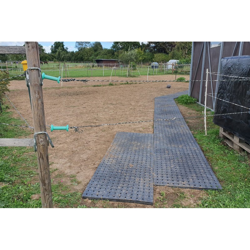 Dankzij de slimme constructie kunnen de paddockmatten naar keuze worden gelegd met de gesloten (dichte) kant of de open (raster) kant naar boven, afhankelijk van de toepassing.