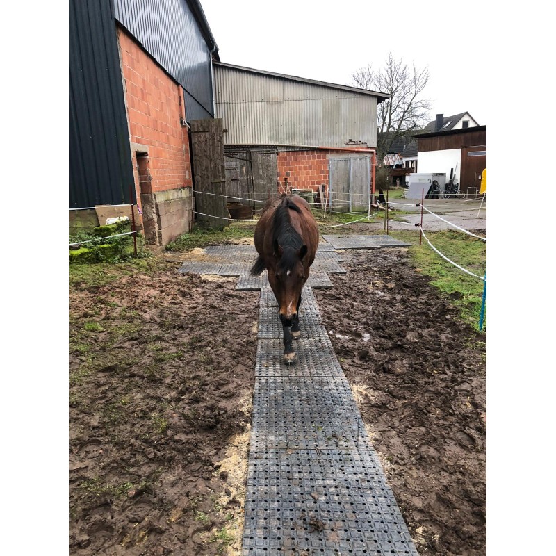 De grote paddockmatten van zacht PVC zijn ideaal om direct te plaatsen op de bestaande ondergrond, zonder dat hiervoor eerst een onderbouw hoeft te worden aangelegd. Of het nu gaat om zand, grind, gras, weidegrond of zelfs modder – met deze matten maakt u in korte tijd een stabiele en belastbare ondergrond zonder ingrijpende grondwerken.